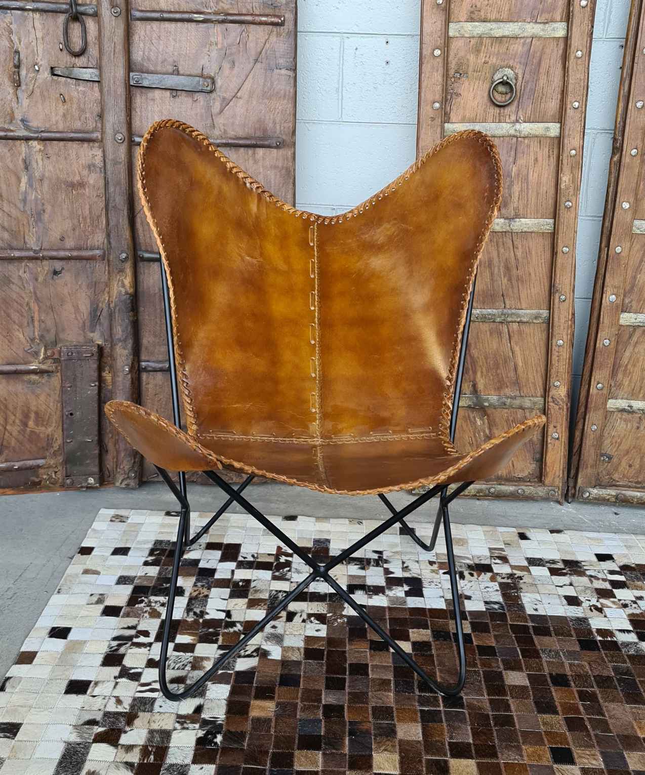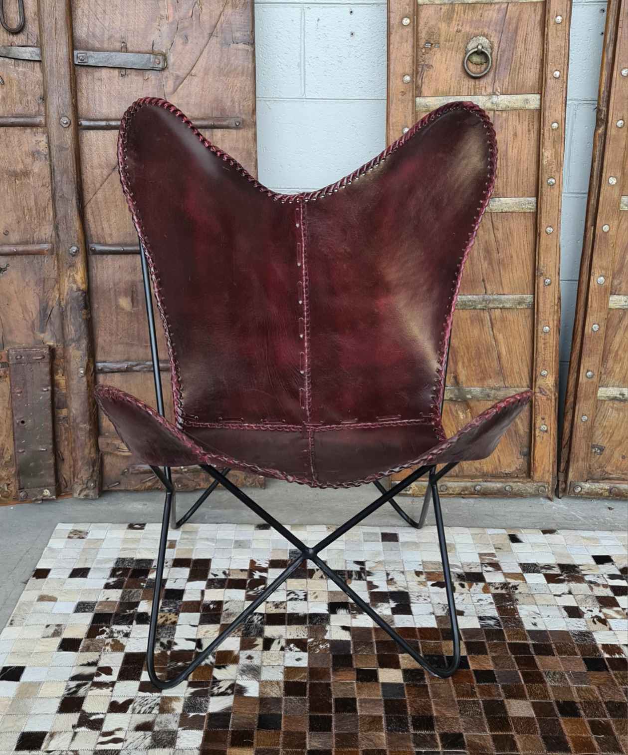 Introducing the Butterfly leather chair - a timeless mid-century style piece with a touch of industrial influence. Crafted with a solid iron frame and genuine buffalo leather, this chair is not only stylish but also durable and long-lasting. Elevate your space with this versatile and sturdy addition.