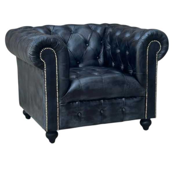The Oxford Chesterfield Leather Armchair in Cloud Grey is a timeless and classic piece of furniture. Made with genuine buffalo leather, solid wood, high density foam, and brass studs, it exudes luxury and elegance. Its deep buttoned design adds a touch of sophistication to any space. Upgrade to high class and create a rich environment with this quality Chesterfield armchair.