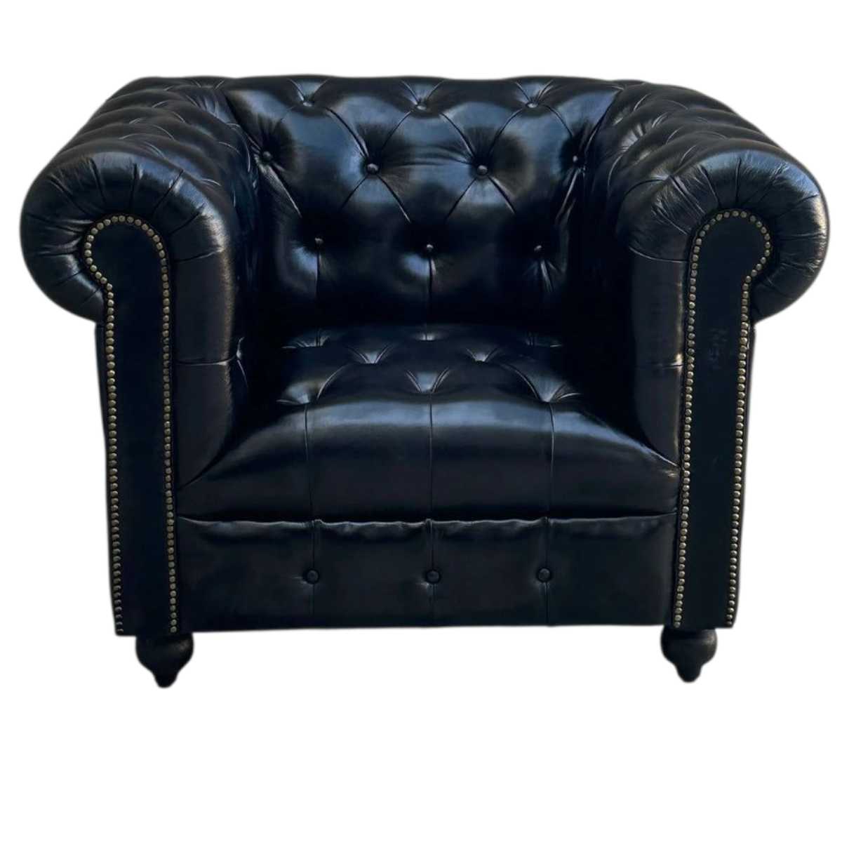 The Oxford Chesterfield Leather Armchair in Black is a timeless and classic piece of furniture. Made with genuine buffalo leather, solid wood, high density foam, and brass studs, it exudes luxury and elegance. Its deep buttoned design adds a touch of sophistication to any space. Upgrade to high class and create a rich environment with this quality Chesterfield armchair.