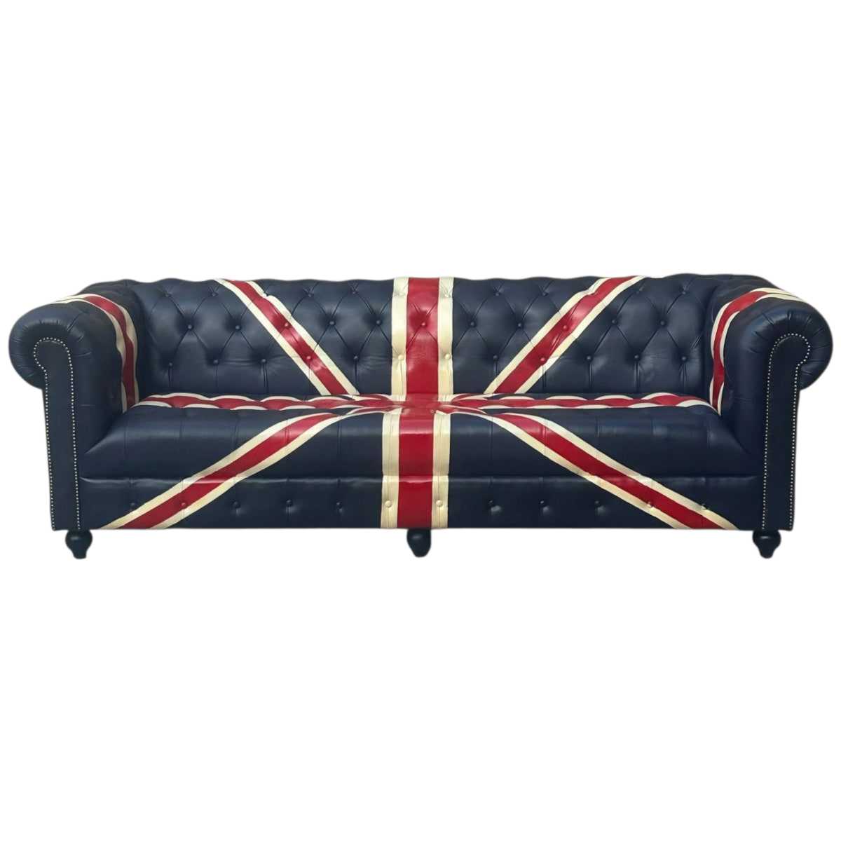 The union Jack Chesterfield Leather sofa is a timeless and classic piece of furniture. Made with genuine buffalo leather, solid wood, high density foam, and brass studs, it exudes luxury and elegance. Its deep buttoned design adds a touch of sophistication to any space. Upgrade to high class and create a rich environment with this quality Chesterfield Sofa